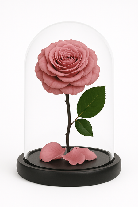 Real and preserved high-quality Ecuadorian Rose encased in a glass dome. It can last for 3-5 years or more with minimal care.