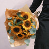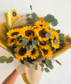 One dozen of locally-sourced Sunflowers with imported Eucalyptus.